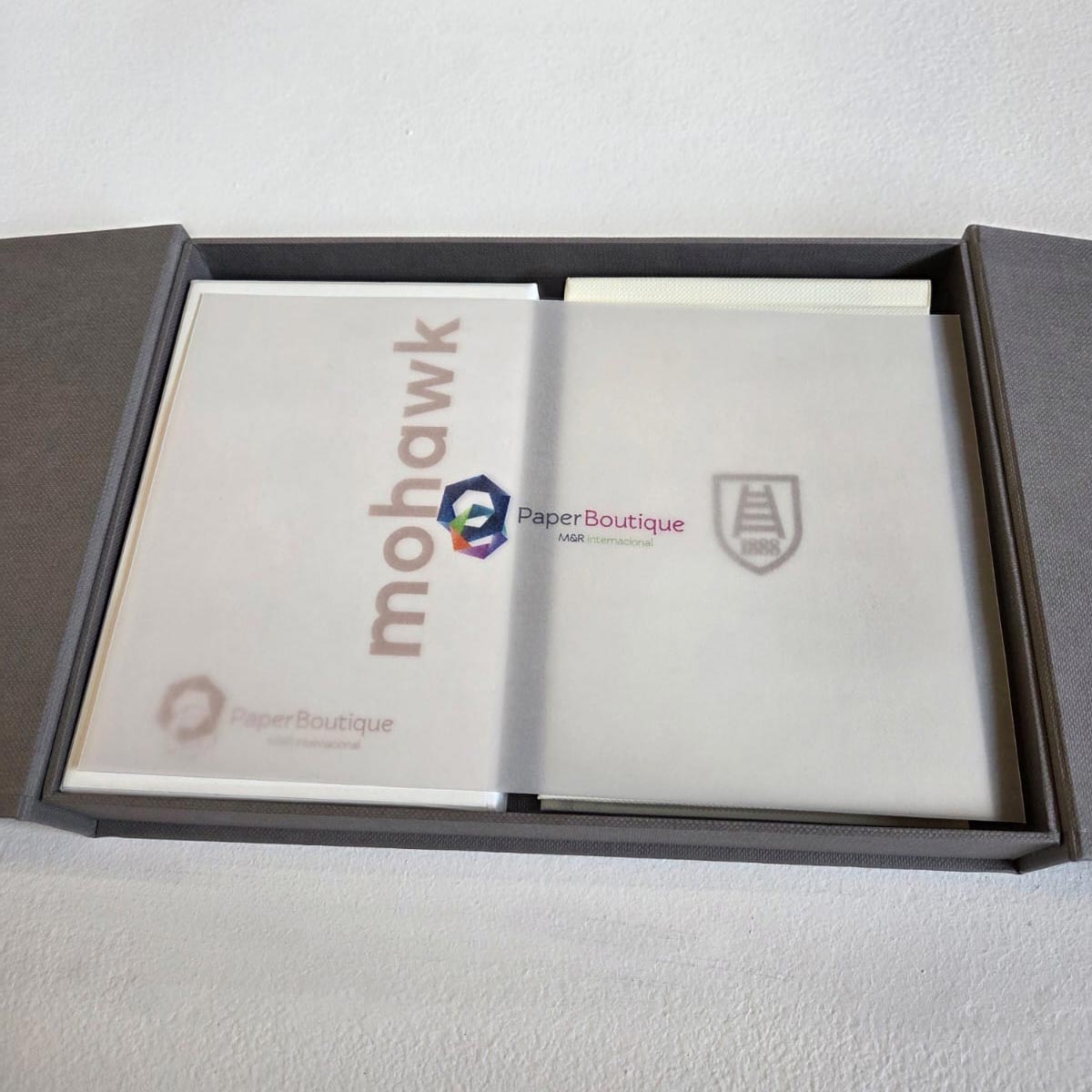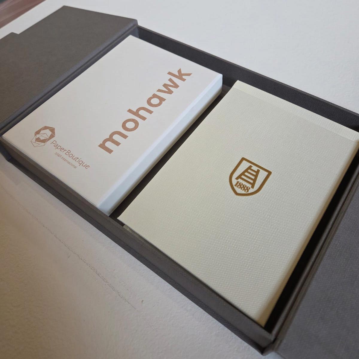 Criamos o box de papeis Mohawk para a Fedrigoni, para divulgação em evento na Colombia.